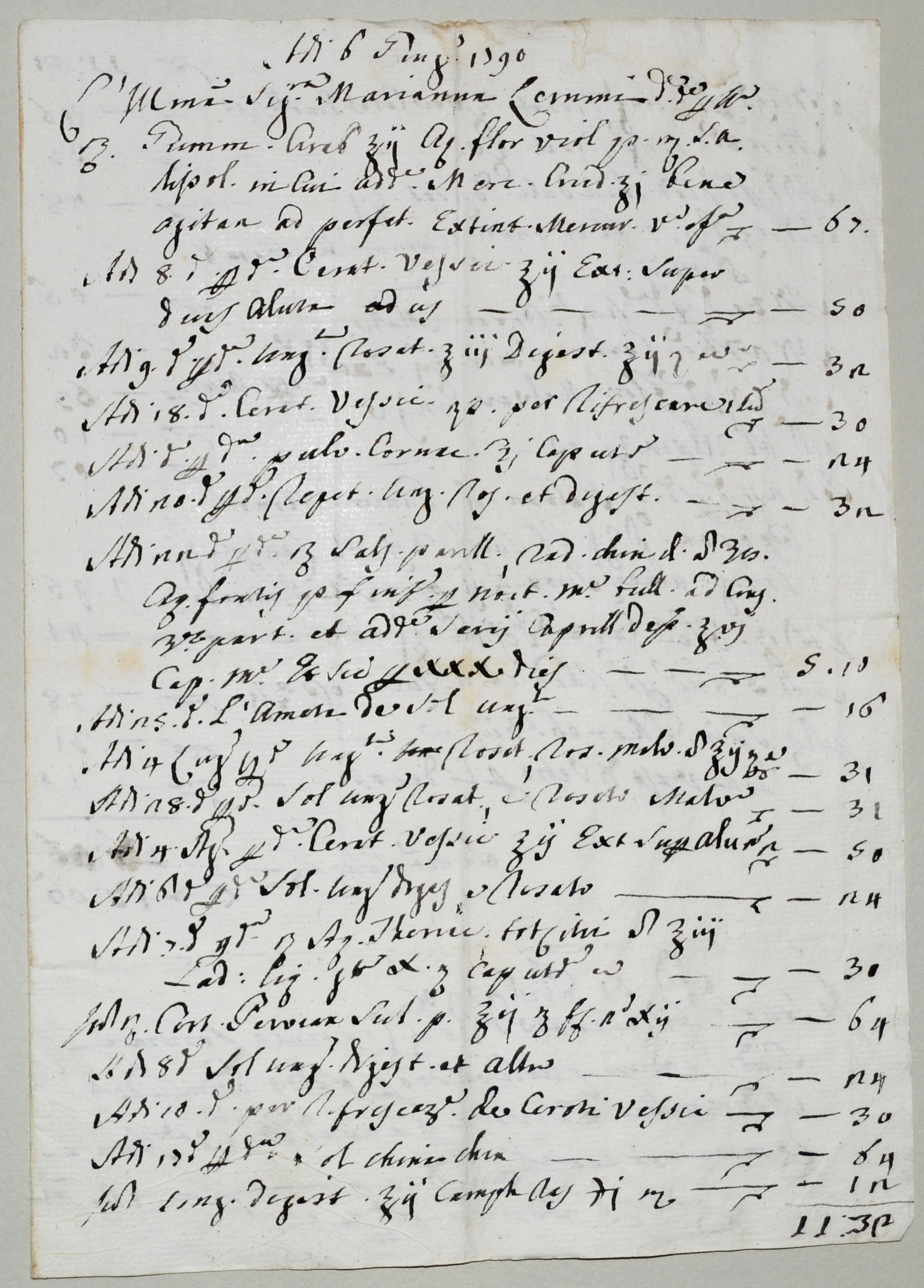 | 1790.12.18 - Perugia - Ricevuta per 30 rosari dalla Sorella Francesca Cappuccina di perugia per volere di Marianna Lemmi |