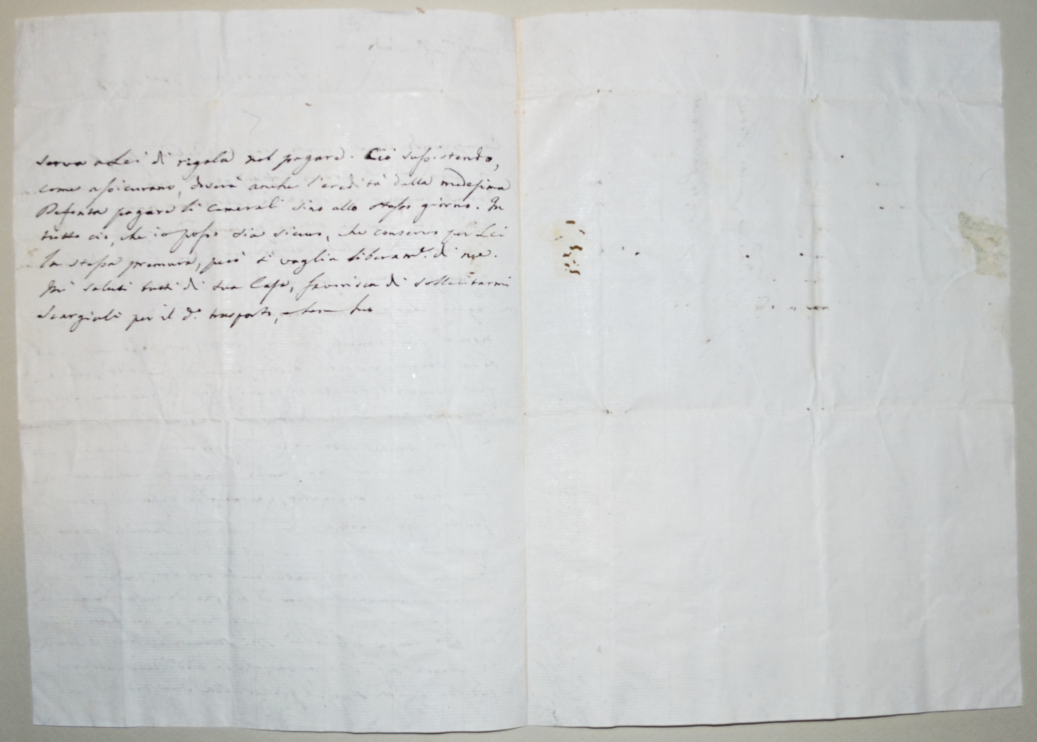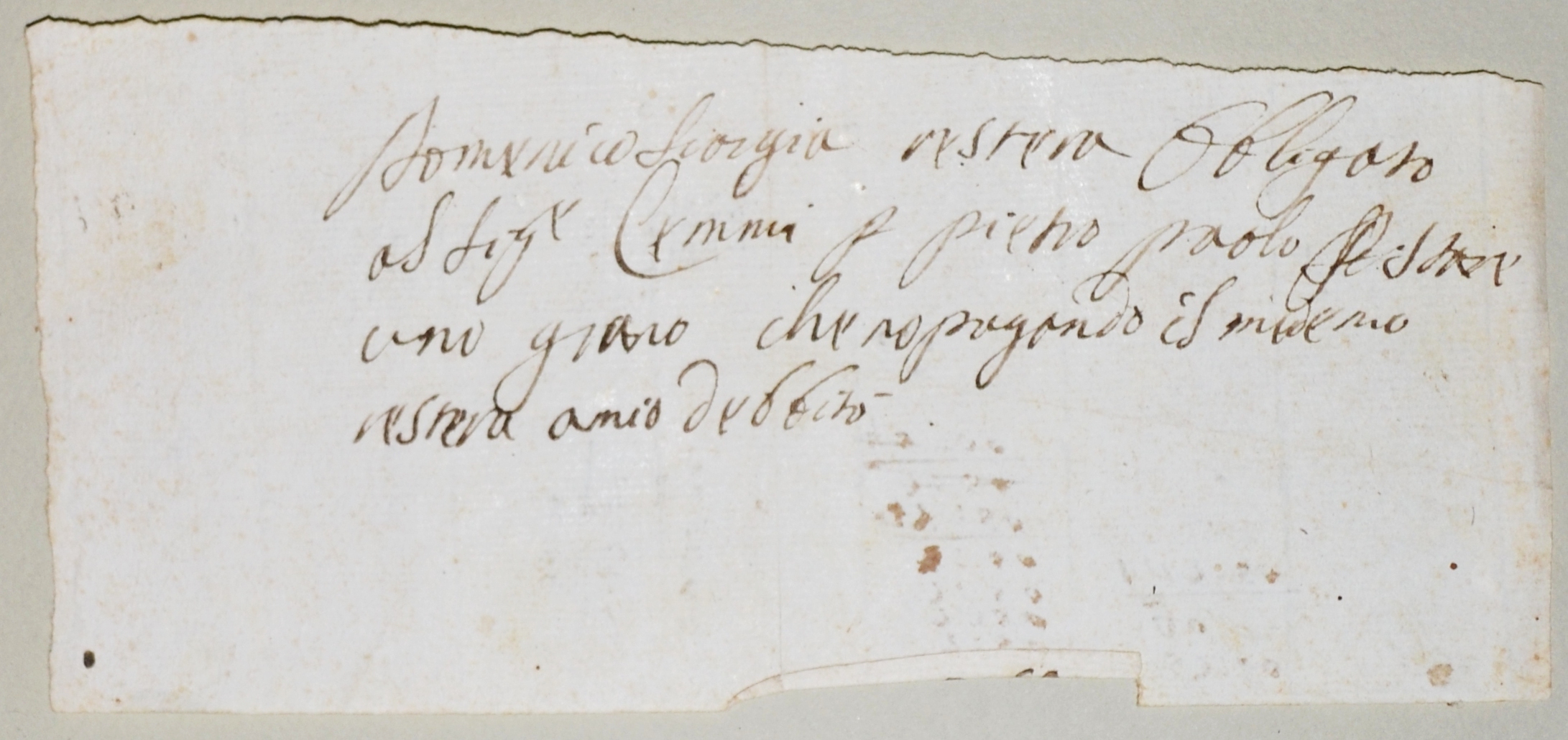 | Si prega il Sig. Costanzo Lemmi a consegnare a Gio. Battista Valterio uno staio di grano per mio conto - Domenico Scargiali |