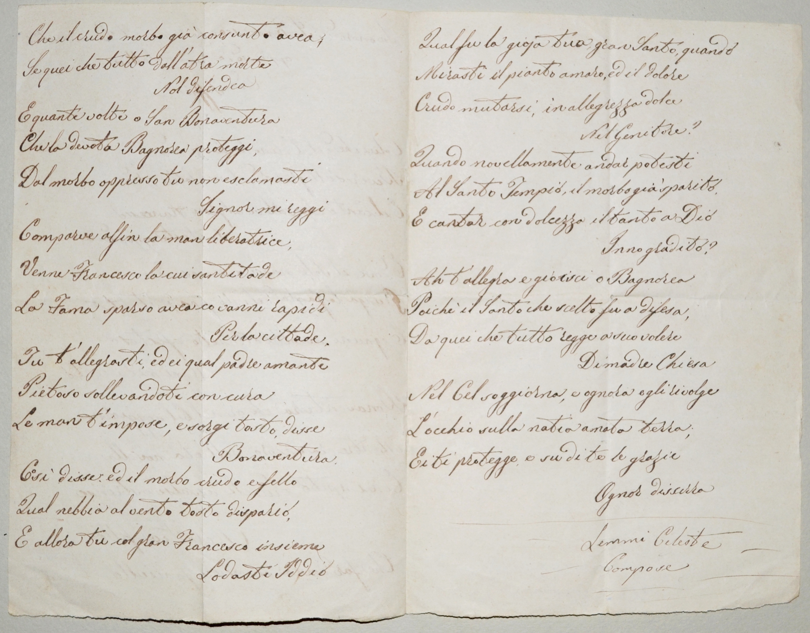 | In onore di San Francesco che curava San Bonaventura oppresso da cruda Malattia - Celeste Lemmi Compose |