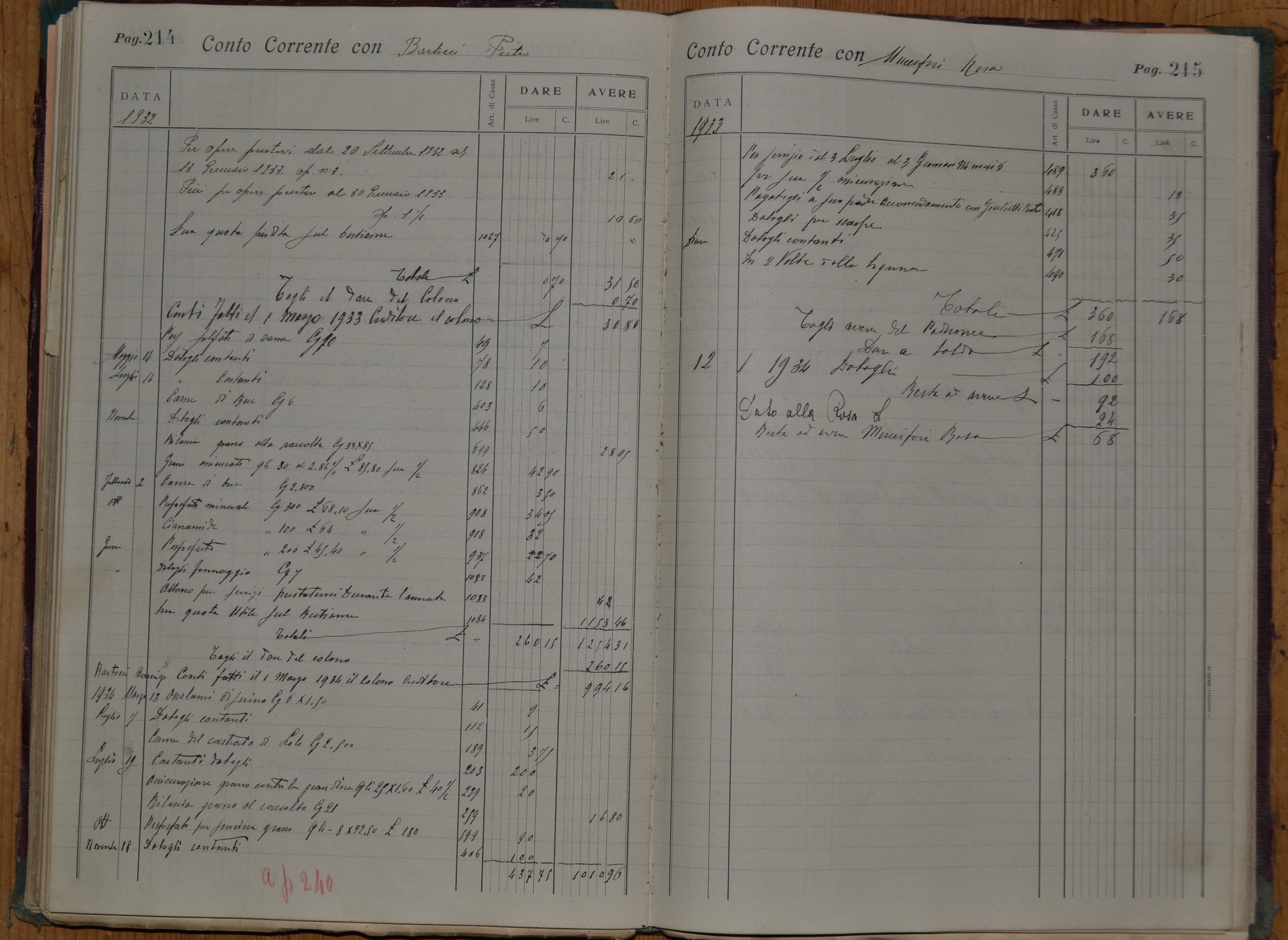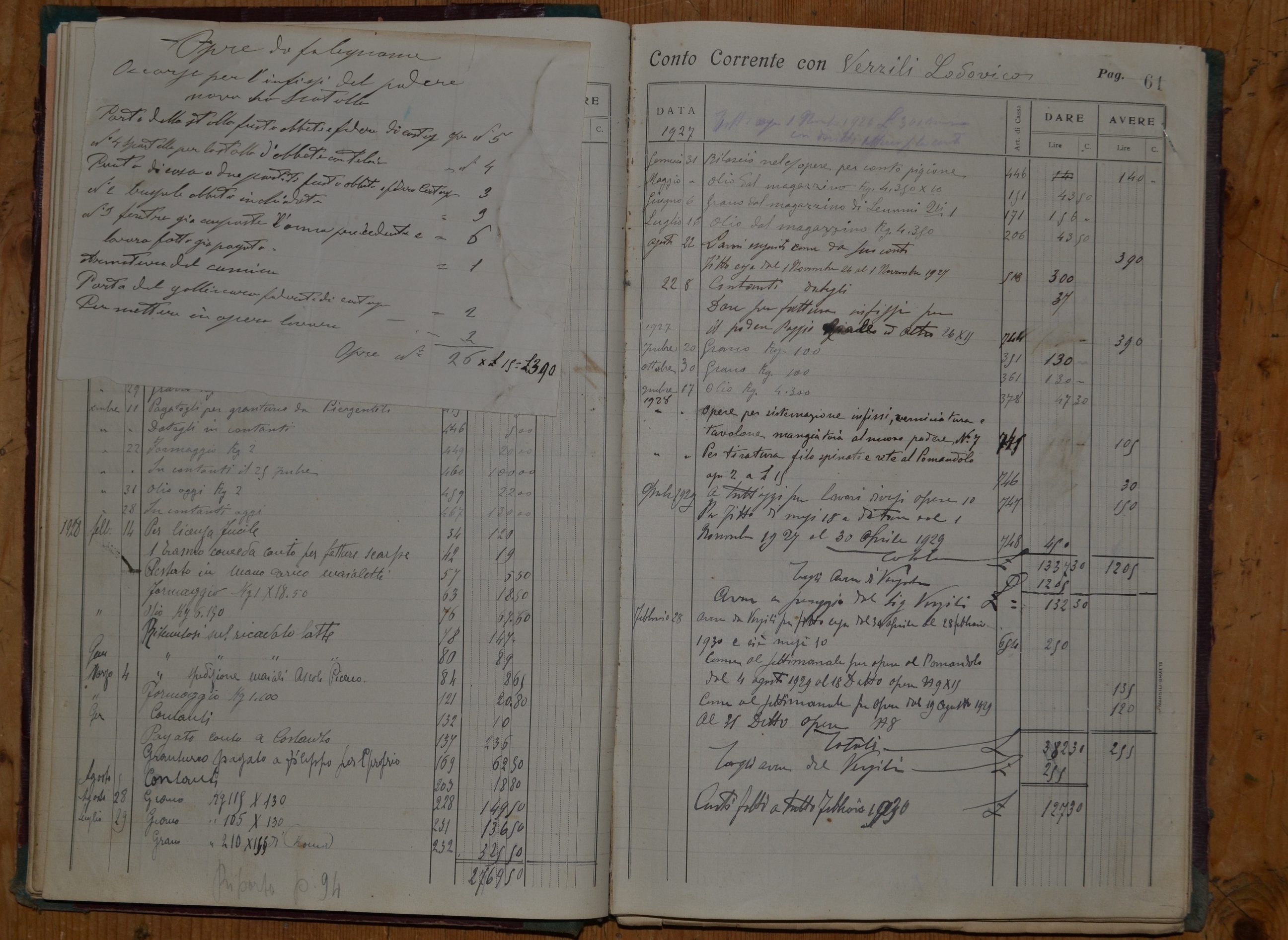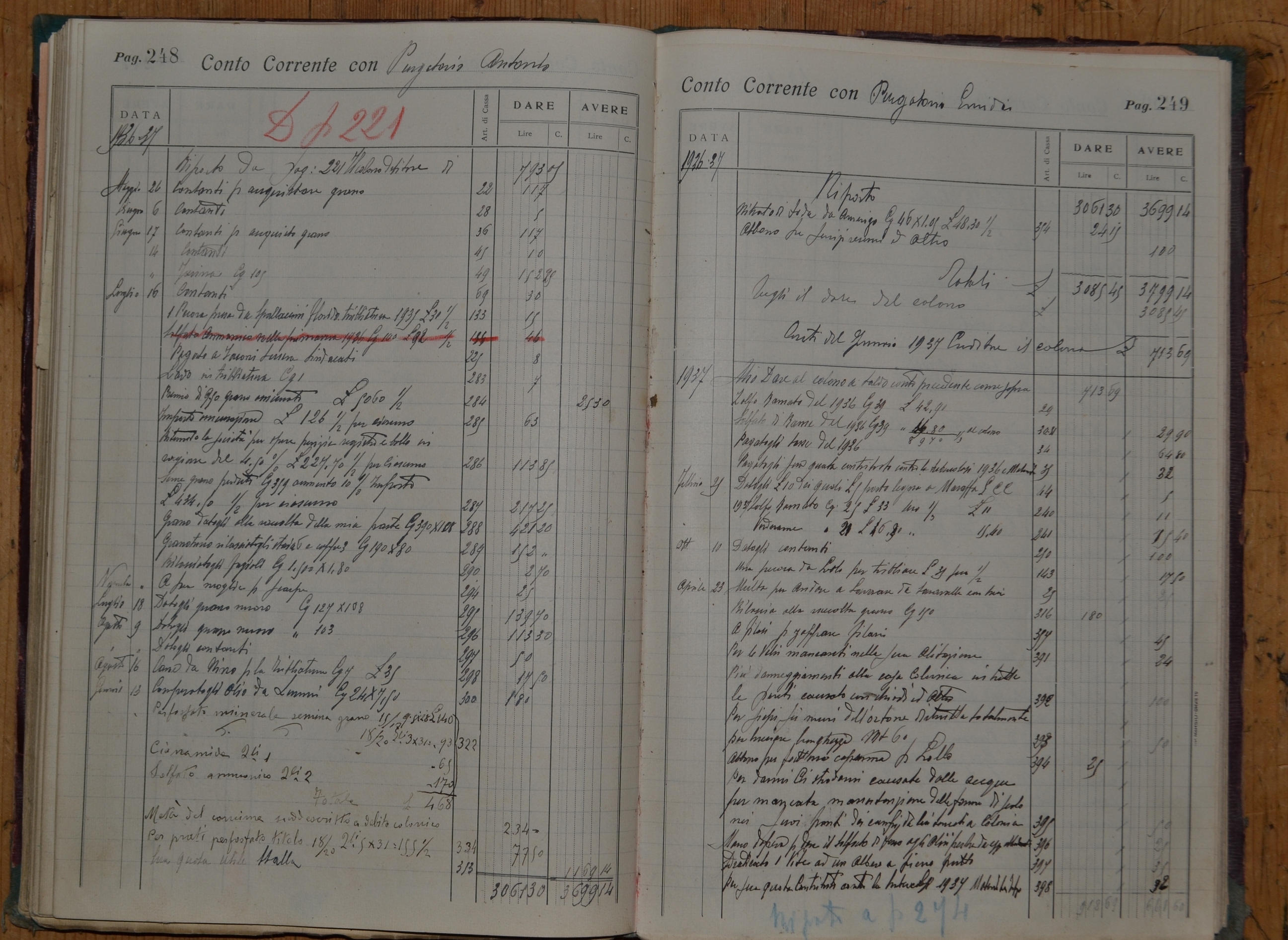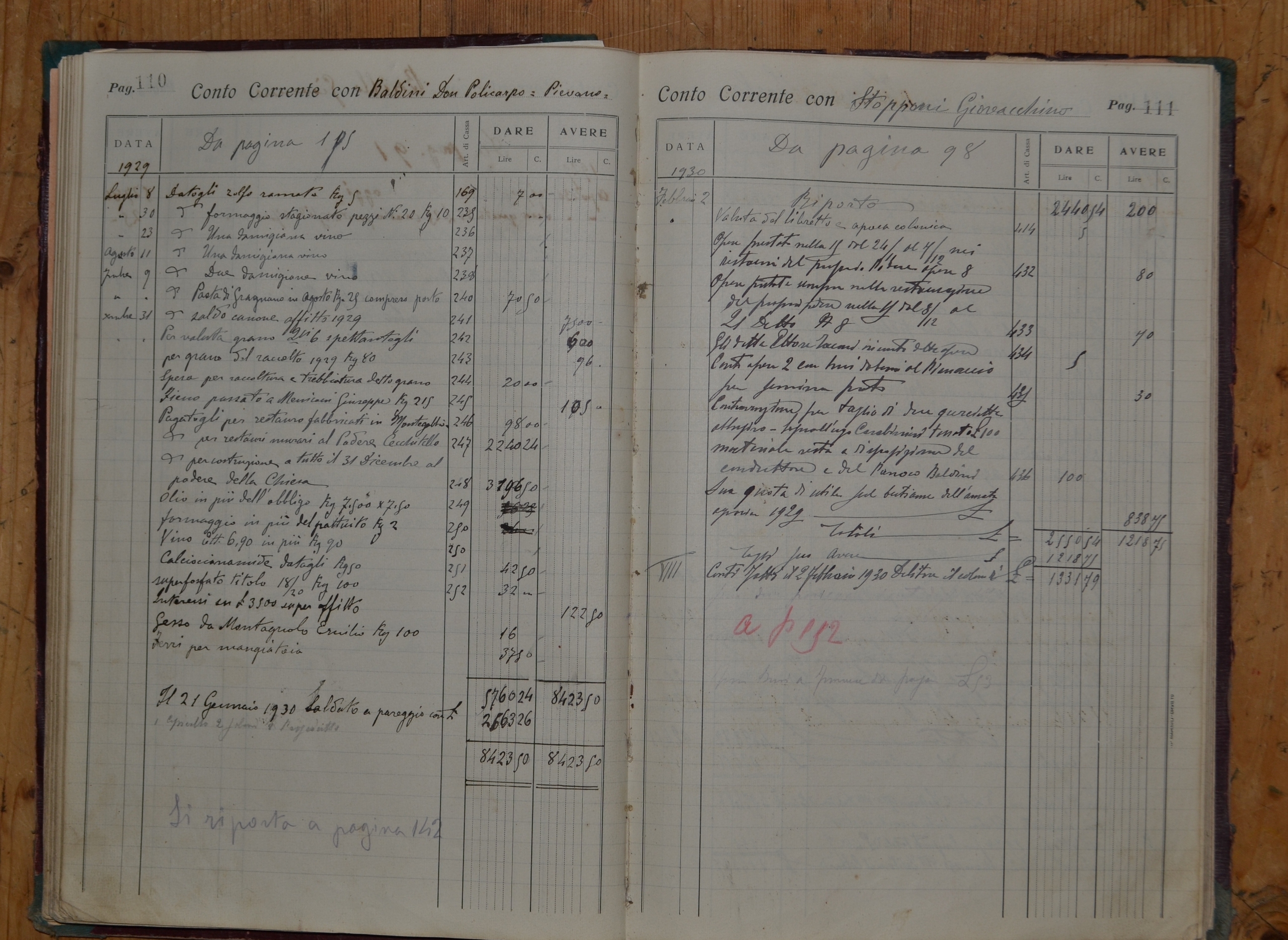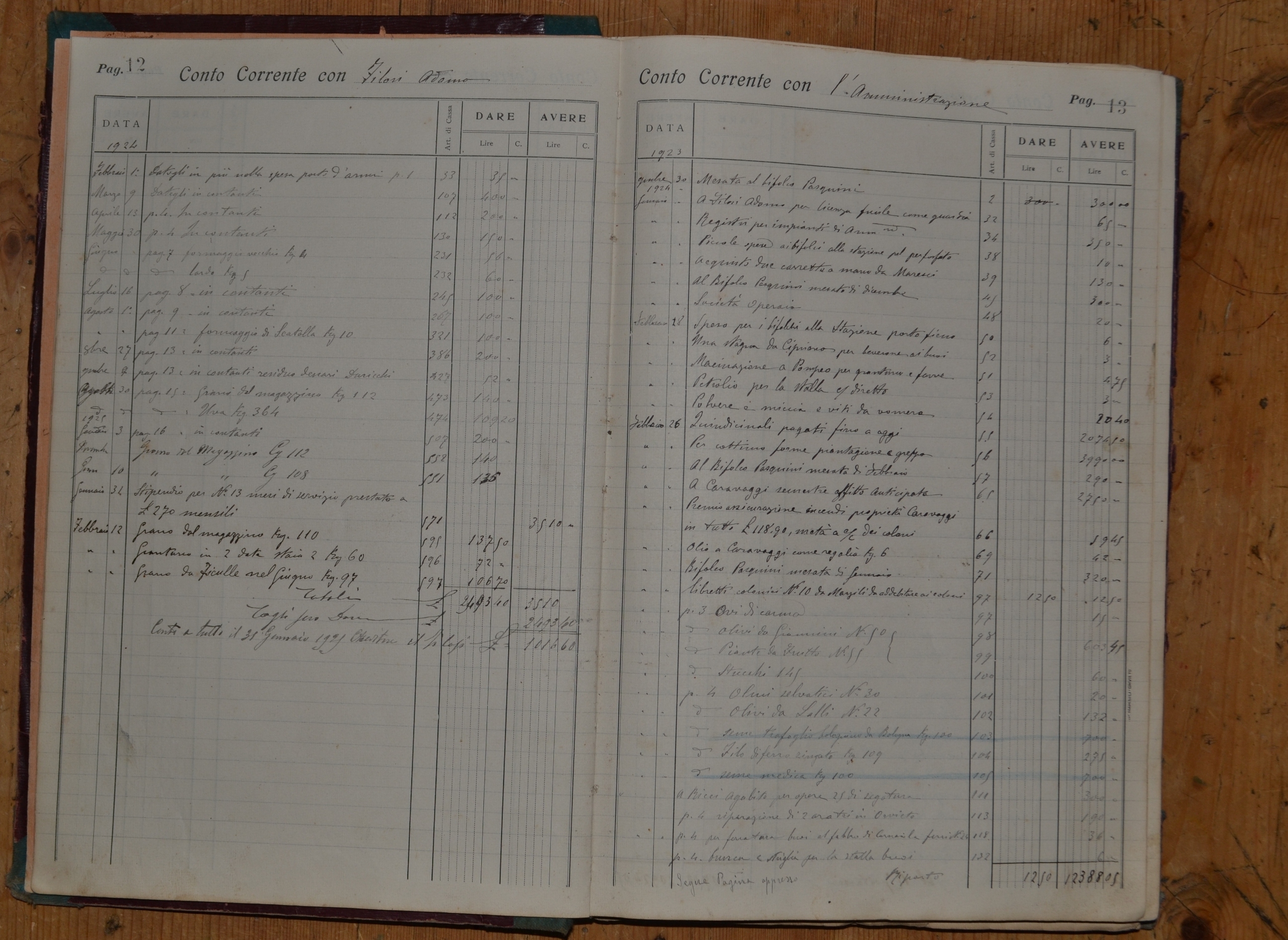 In questa pagina un documento eccezionale di storia montegabbionese, il libro dei conti dell'Amministrazione di Eletterio Vergari di tutti i suoi poderi di Montegabbione e dell'Amministrazione. Interessante perchè sono riportati tutti i movimenti economici di ogni singolo podere e dell'amministrazione restituendoci uno spaccato di vita contadina di più di due decenni da 1923 al 1949.