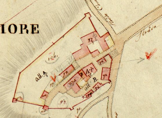 Parte di mappa catastale di Castel di Fiori databile intorno al 1860-1870 - Estratta dal catasto Gregoriano.