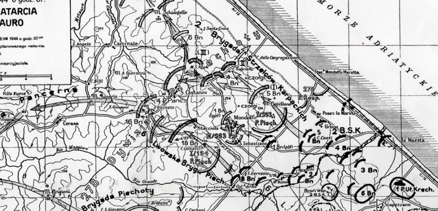 Successivamente si distinse nella liberazione di Ancona (18 luglio 1944) e nell’Operazione Olive, contro la Linea Gotica (settembre 1944). Nel 1945 prese parte alla battaglia di Bologna. Alla fine della guerra in Europa contava circa 103.000 uomini, ma la maggior parte rimase in esilio stabilendosi in Gran Bretagna.