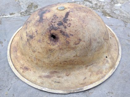 Il primo, proveniente da Faenza, con quel che resta di una vernice grigia/gialla del Nord Africa e Capagna d'Italia ha un fregio laterale, probabilmente Royal Artilley, le ha viste tante. Ha il foro della vite del liner saldato, manca dei ganci, elementi tipici dei riutilizzi. Presenta due fori cupolari, forse fatti successivamenti per un altro uso, chissā.